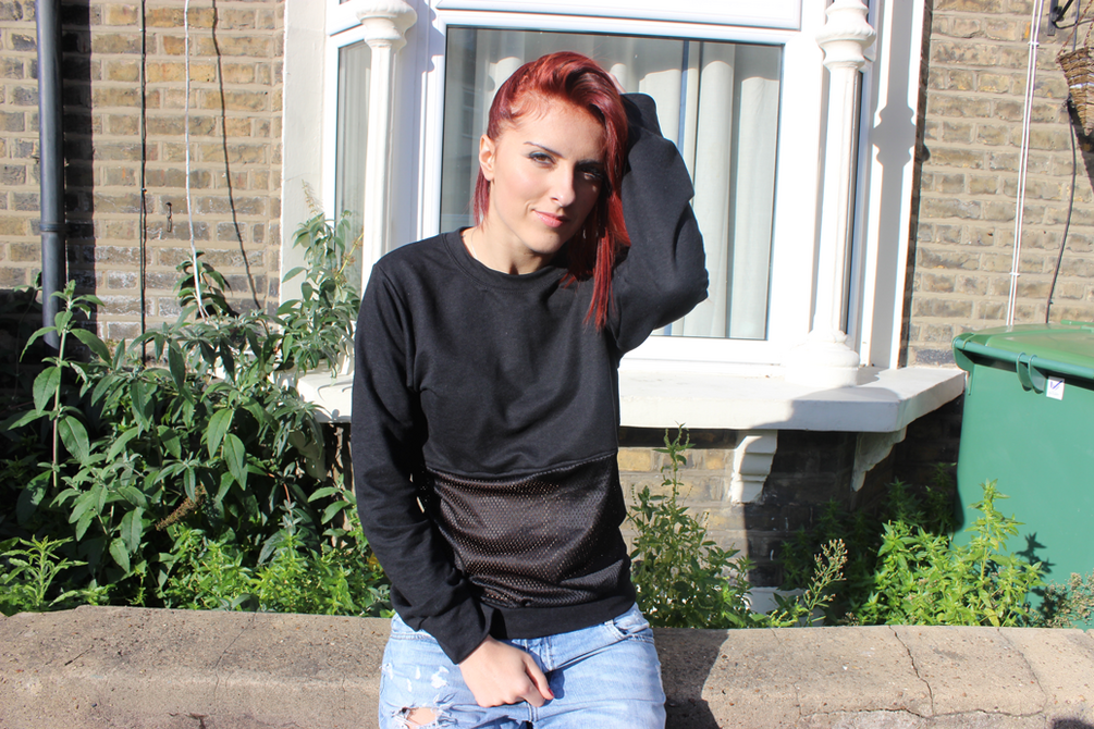 Mesh Panel Black Sweater
